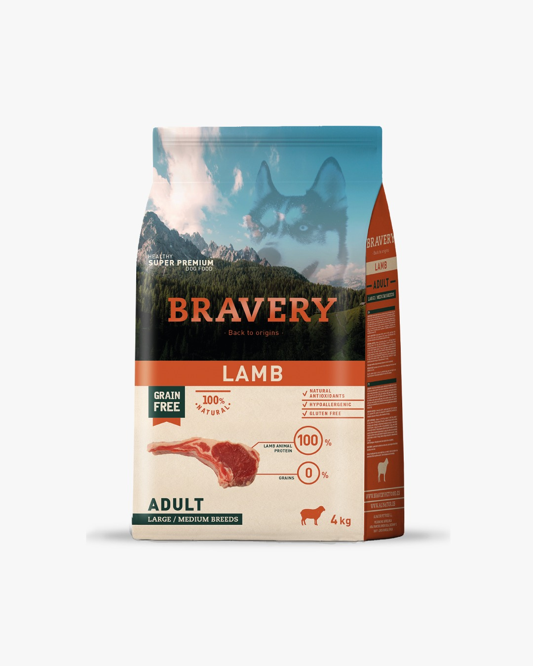 BRAVERY LAMB ADULT LARGE/MEDIUM BREED 4 KG cantidad