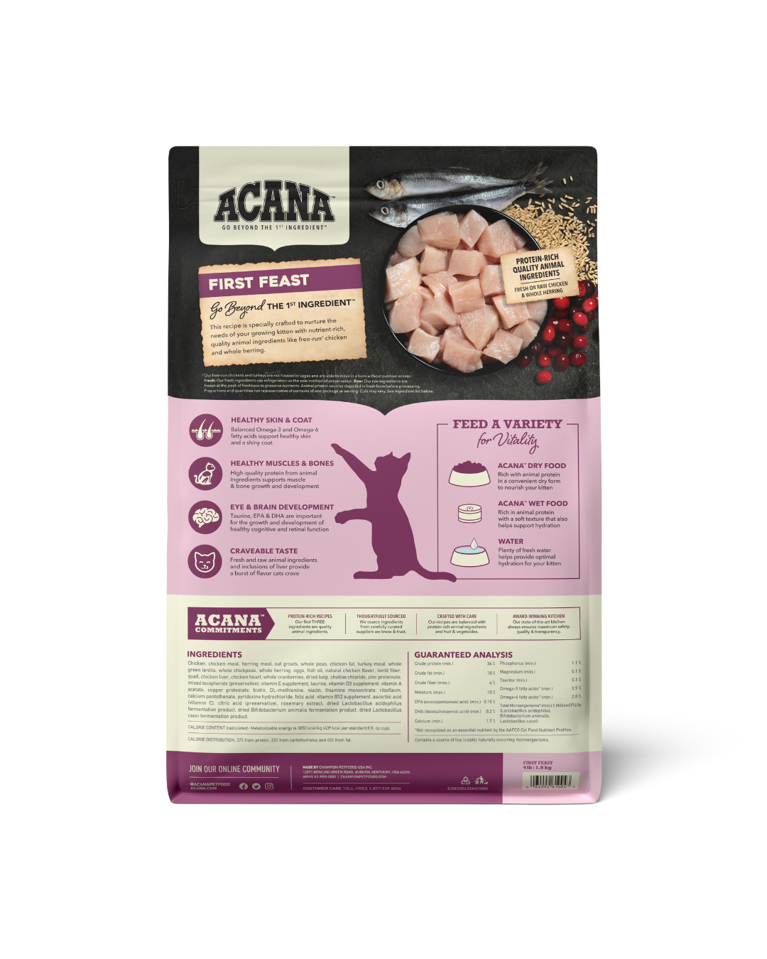 / FIRST FEAST GATO 70% CARNE DE POLLO, PESCADO, HUEVO, PAVO Y CODORNIZ 30% VEGETALES 0% GRANOS