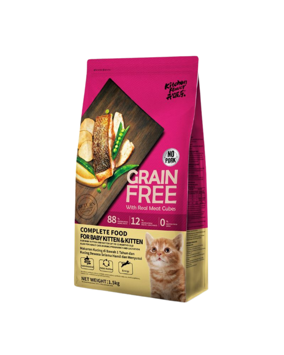 KitchenFlavor GRAIN FREE Alimento Premiun completo sin cereales para Baby Kitten (con trozos de salmon real visibles)