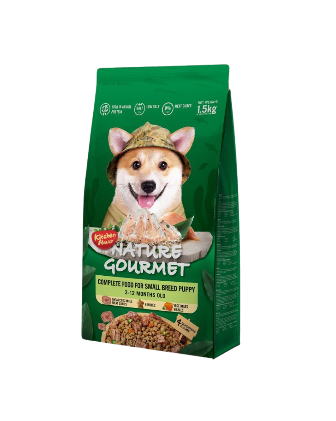 KitchenFlavor Nature Gourmet Alimento Premiun completo para cachorros de razas pequeñas con trozos de krill antártico liofilizados Visibles mas verduras secas visibles 1,5Kg