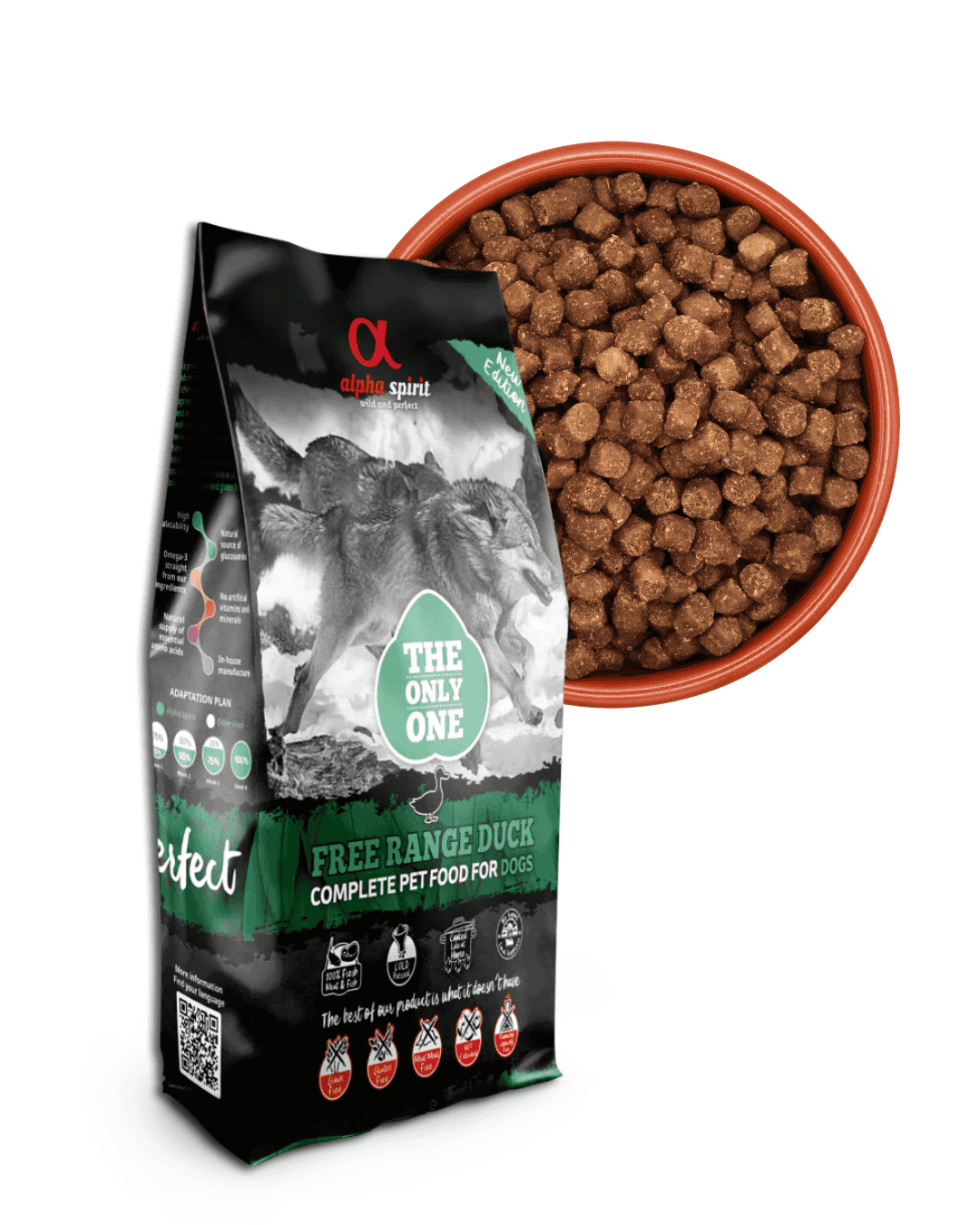 THE ONLY ONE COMPLETE DOG FOOD DUCK 85% CARNE DE PATO, POLLO Y PESCADO 15% VEGETALES 0% GRANOS